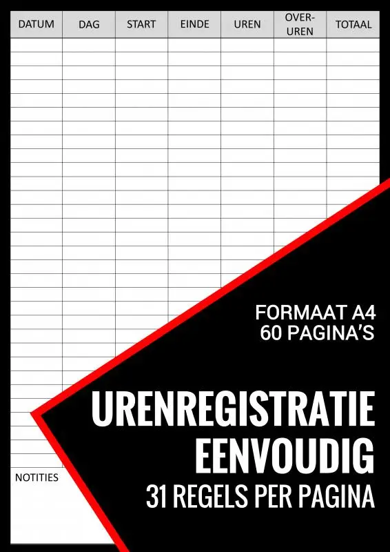 Uren Bijhouden met een Eenvoudig Urenstaat Boekje - met 31 Regels per Pagina (A4)